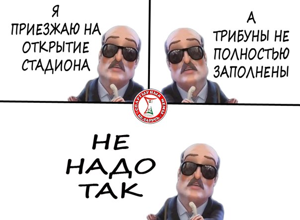 Многие пользователи социальных сетей жаловались на пустые места на Борисов-Арене, даже выкладывали полупустые трибуны. Как стало известно, многие снимки были сделаны тогда, когда на арене только-только собирались болельщики. Но комиксы в социальных сетях уже было не остановить …