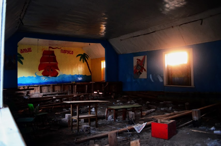 Мы застали лагерь в самом начале его сноса. Чего-то уже не было, но бОльшая часть все-таки осталась нетронутой. Пустые глазницы домиков угрюмо смотрели на уже повзрослевших «детишек», которые еще в девяностых наслаждались безмятежностью этих стен.