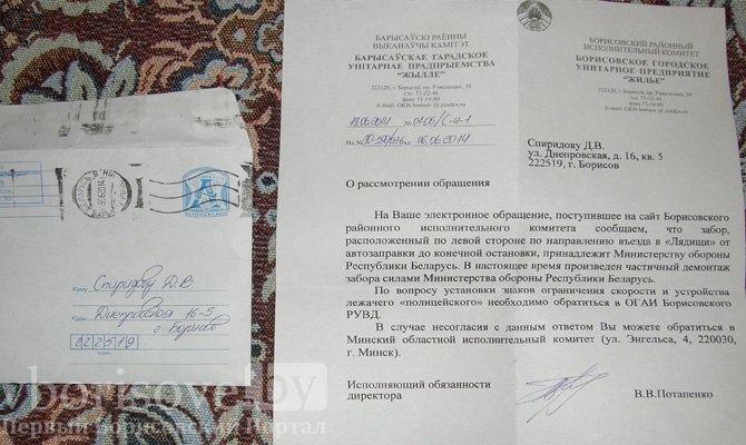 В мае текущего года житель Борисова Дмитрий прислал письмо, в котором рассказал о заборе, представляющем реальную опасность для гуляющих по расположенной рядом дорожке горожан. Сам Дмитрий и его сын чуть не оказались погребенными под бетонной плитой.