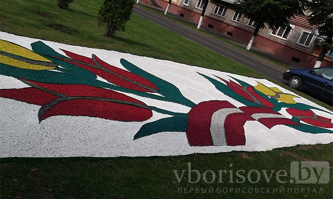 Одна из главных улиц города — Чапаева, от завода «ФРЕБОР» до центральной площади украшена цветочными клумбами и различными конструкциями. Многие борисовчане уже успели заметить, что одной из интересных особенностей украшения улицы Чапаева стали разноцветные узоры из покрашенных камней.