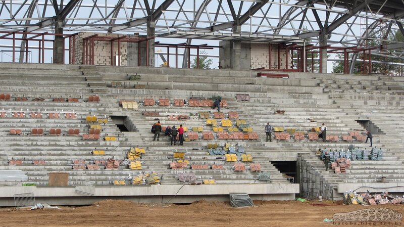 Фотоотчет со строительства стадиона БАТЭ (5 июня 2013, установка сидений)