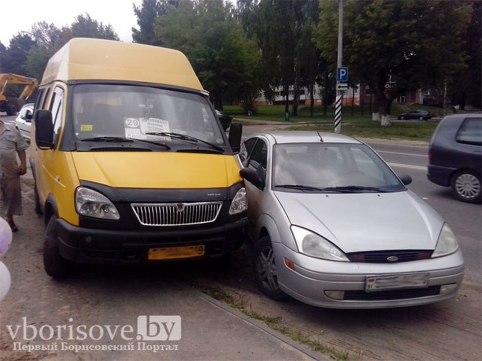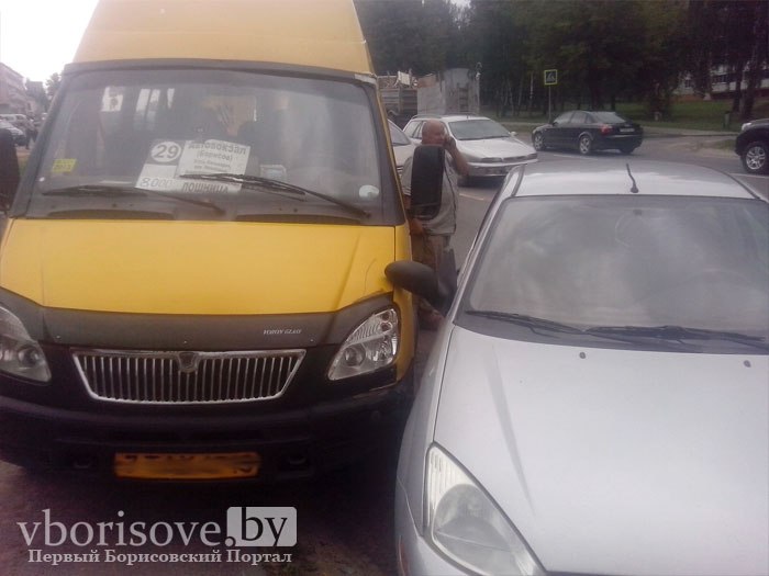 Сегодня, 26 июля, на улице Гагарина произошло дорожно транспортное происшествие с участием маршрутного такси № 29 (Автовокзал — Лошница) и легкового автомобиля. Оба автомобиля двигались в сторону Городского стадиона. На момент, когда журналист VBORISOVE.BY делал фото, свидетели и водители авто и такси ждали милицию. В ДТП никто из пассажиров не пострадал.